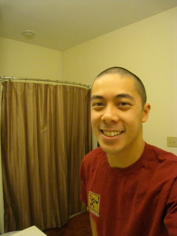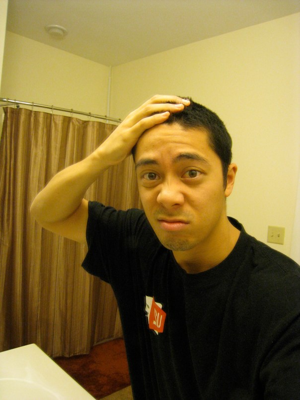 This morning, I finally got around to cutting my hair, just in time for my excursion to the Lone Star State.  With the buzz, I like to cut it, at the very least, once every two weeks.  Every week is ideal, but I get lazy (surprise).  This time, I’ve gone over a month between cuts, which is the longest I’ve gone since I buzzed my head almost five years ago.  It hasn’t been a big deal, though.  The way I see it, I’ve had no where to go and no one to impress.  Here are some pics.