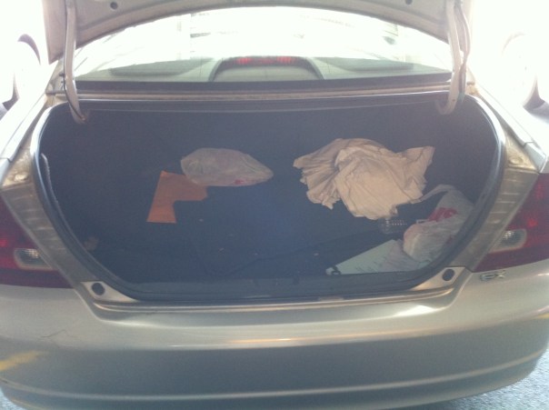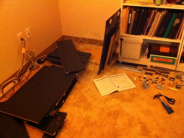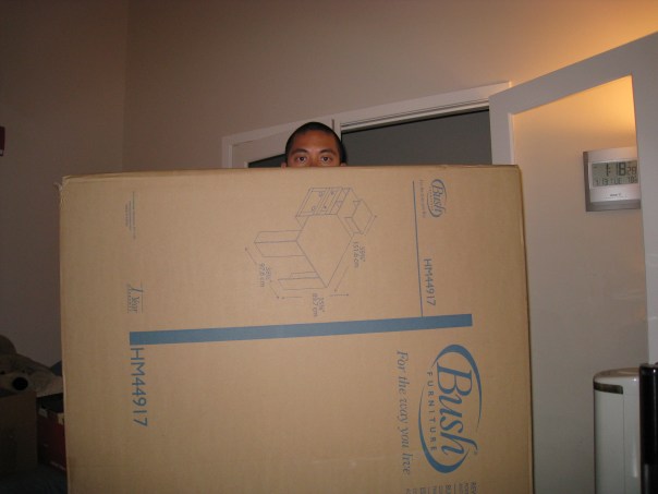 9:13 a.m. - No, this is not when I got up this morning. It's the time I remembered that it was the 12th of the month.9:34 a.m. - Our desk was not holding up to the weight of the computer stuff. Staples, here I come!10:41 a.m. - After taking my sweet-ass time to decide on a new desk, the thing wouldn't fit into my trunk. Speaking of which: I really need to clean my car!10:47 a.m. - Tried to Shazam a song on the way home from Staples and got this message. I have to pay for more than 5 tags per month?!? Boo, Shazam! Your "favorite app" status has been revoked!11:54 a.m. - Finally hung up the MJ poster we found at the Rock and Roll Hall of Fame and the badass pics of Edge and Bono.12:34 p.m. - From our new place, I can now walk to the gym. Bonus! 1:42 p.m. - Taking a break from the racquetball drubbing Mike was giving me to take this pic.5:34 p.m. - Out for a quasi-early Mexican-food dinner. I WHOMPED on my food.8:30 p.m. - The new desk, unwrapped and awaiting assembly. Mmm, adult Legos.11:33 p.m. - 3 hours and one headache later, the new desk is up and in place. I'd be up for another 2 hours putting the computer stuff back together again.1:20 a.m. - This is why the desk couldn't fit into my little Civic's trunk: The box was HUGE!